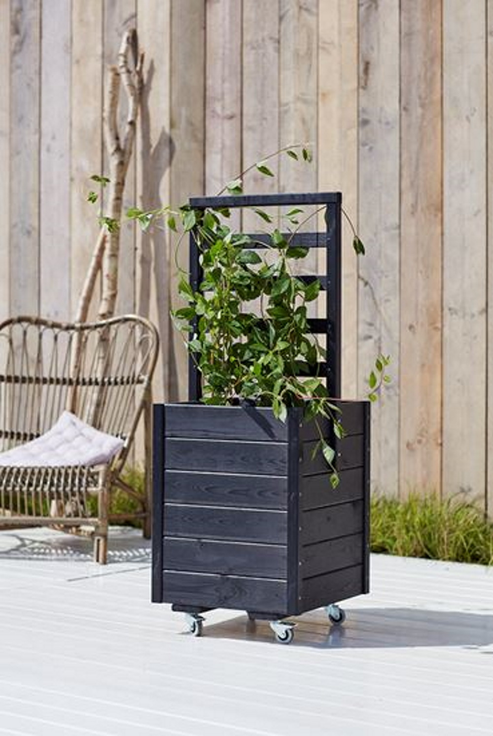 20cm Black Polystone Low Cubic Garden Planter Plant Pot Tub Cube